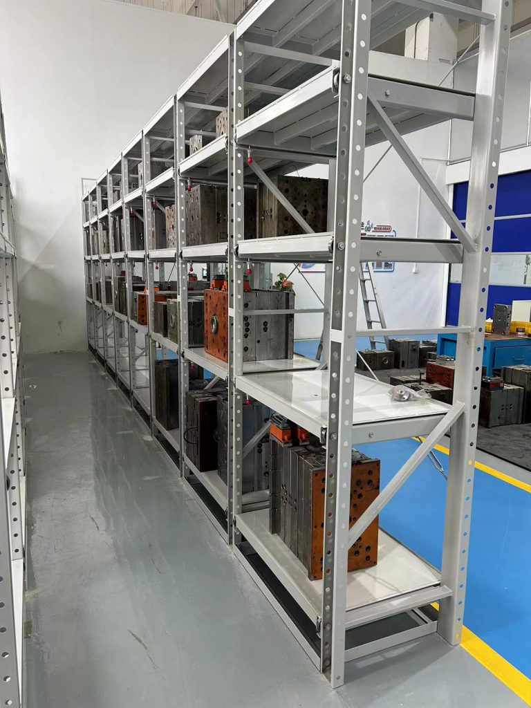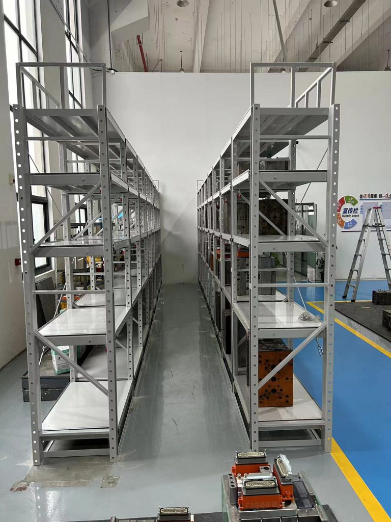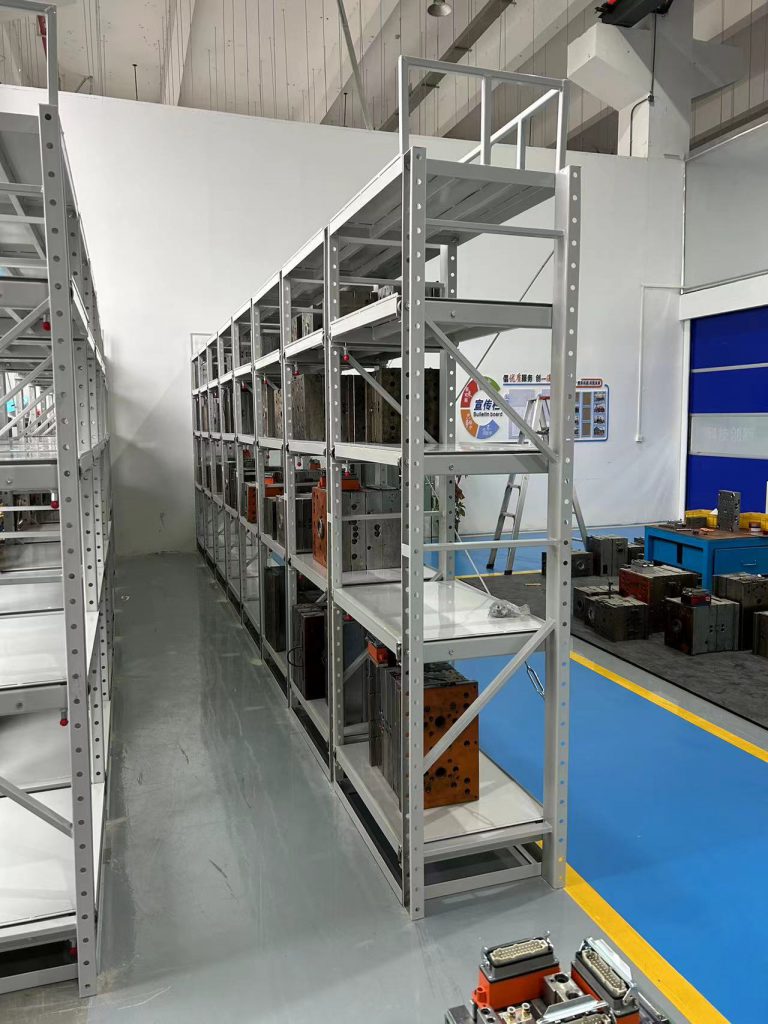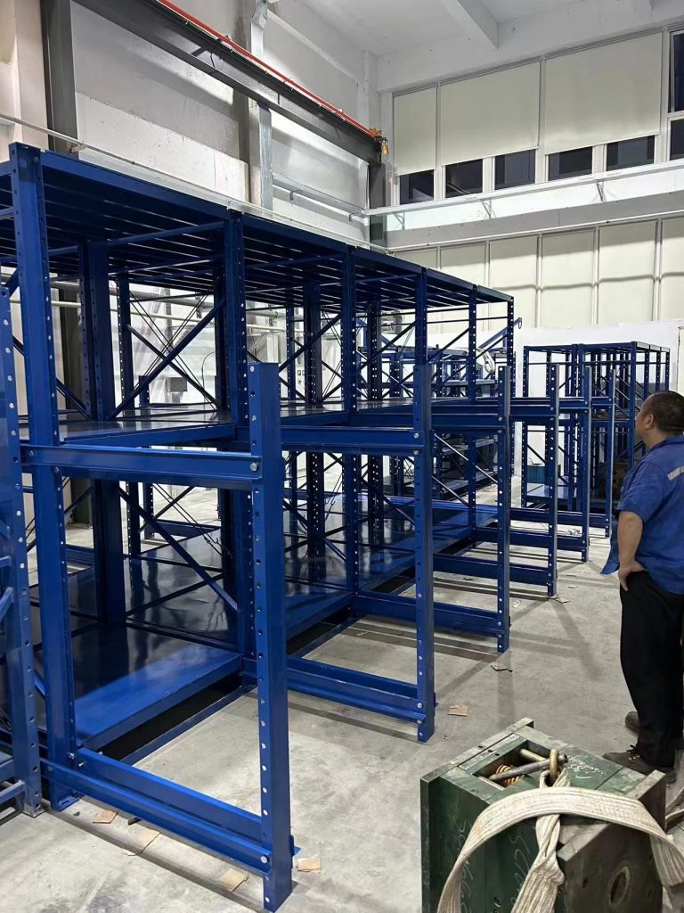 接著,開始搬運和組裝模具架的各個部件。每一個部件都經過嚴格的質量檢測,確保其堅固耐用。安裝人員們小心翼翼地將立柱、橫梁、抽屜等部件一一組裝起來,他們熟練地使用各種工具,擰緊每一顆螺絲,確保模具架的結構穩定可靠。