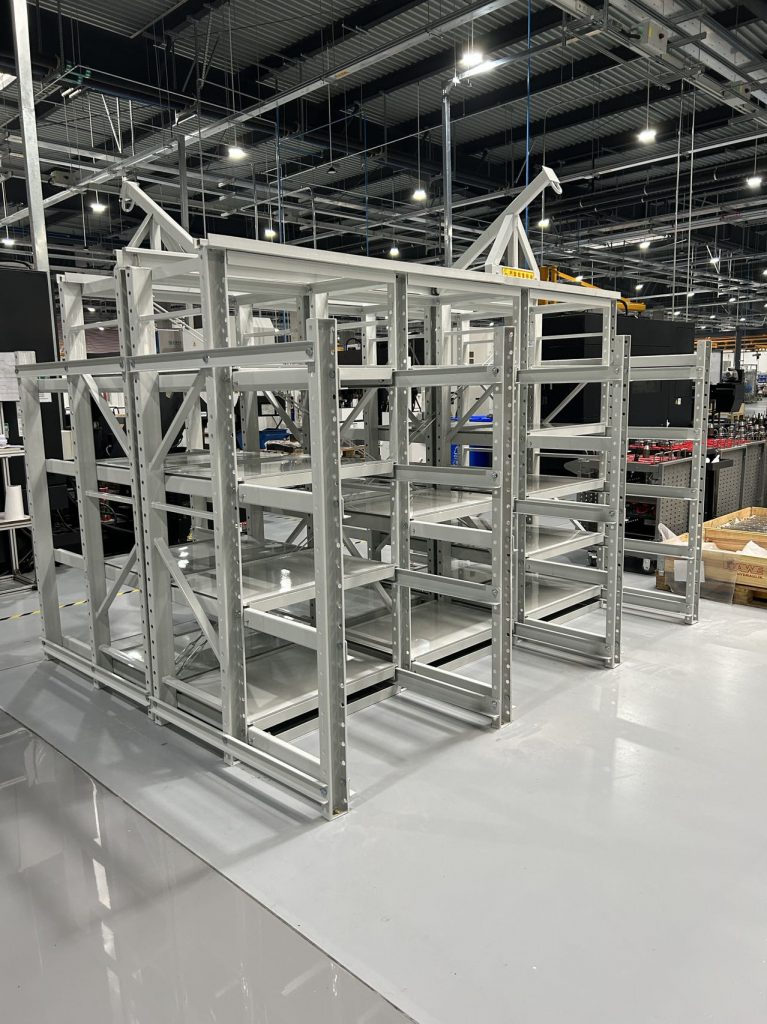 存放大于1000KG以上的模具,都是用博儲(chǔ)全抽模具架,重量大的模具,體積也是比較大的,吊裝存取的時(shí)候,為了安全都會(huì)把整個(gè)層板全部抽出,再存取。